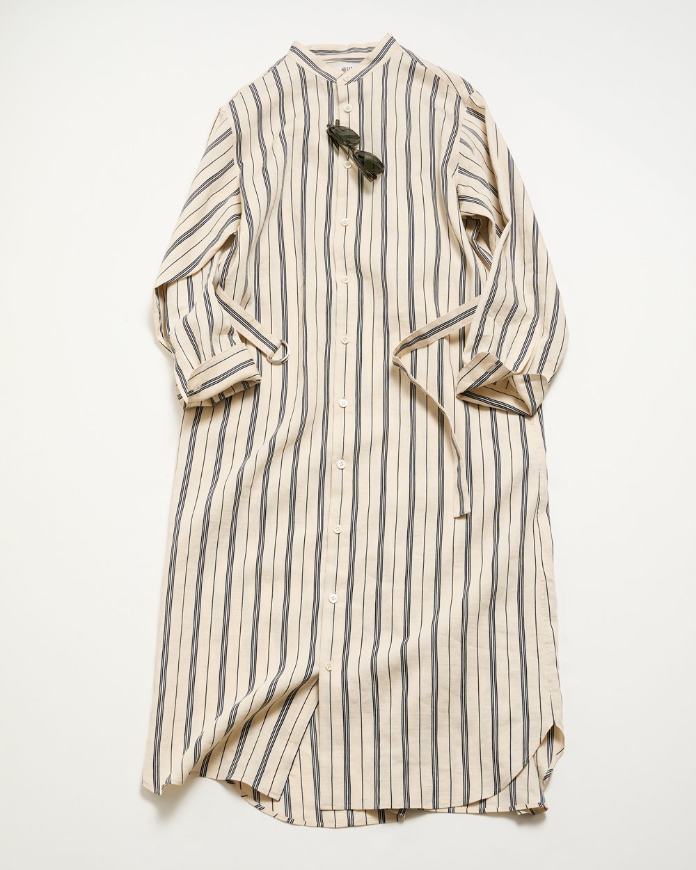 白よりも穏やかで、肌に馴染むエクリュカラー。天然素材を知り尽くしたイタリアの名門「NALYA(ナリヤ)」社の高級リネンを贅沢に使用したシャツワンピースが新登場しました。一枚でシンプルに着ても、パンツとのレイヤードや旅先の羽織りとしても◎ 春から夏まで、長く活躍するアイテムです。