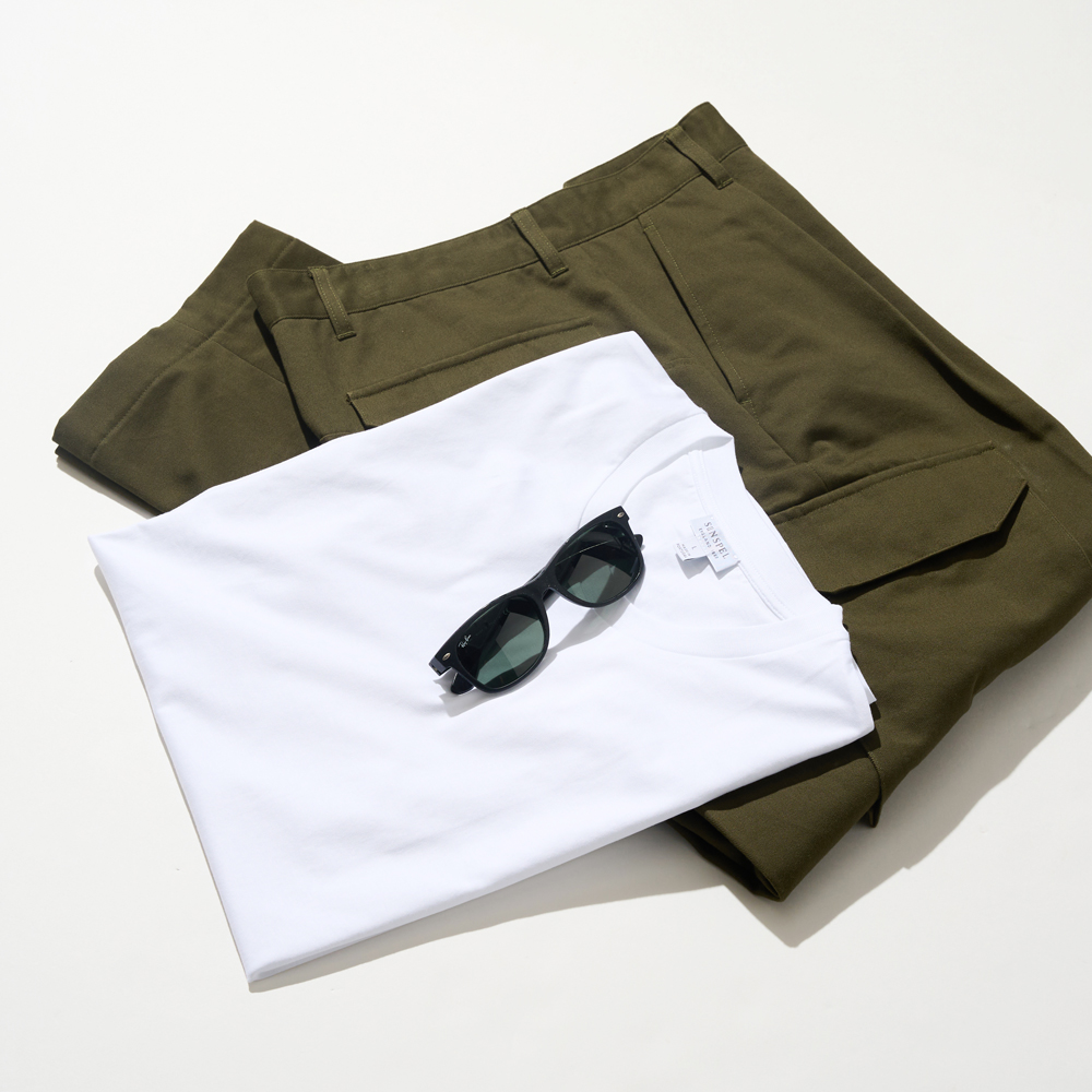 ※ 着用:177cm / Lサイズ アイテムを見る 03|装いの完成度を引き上げる、〈BRITISH MADE〉の定番パックTシャツ